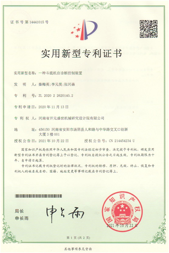 技术再突破!我司“斗提机自诊断控制装置”获国家专利授权